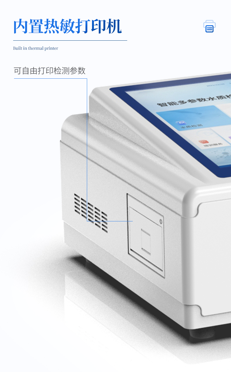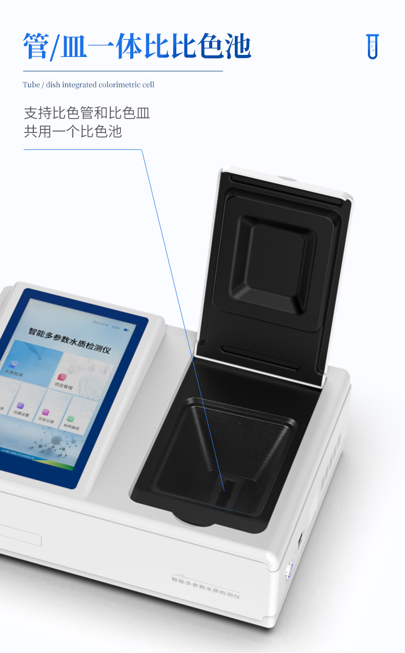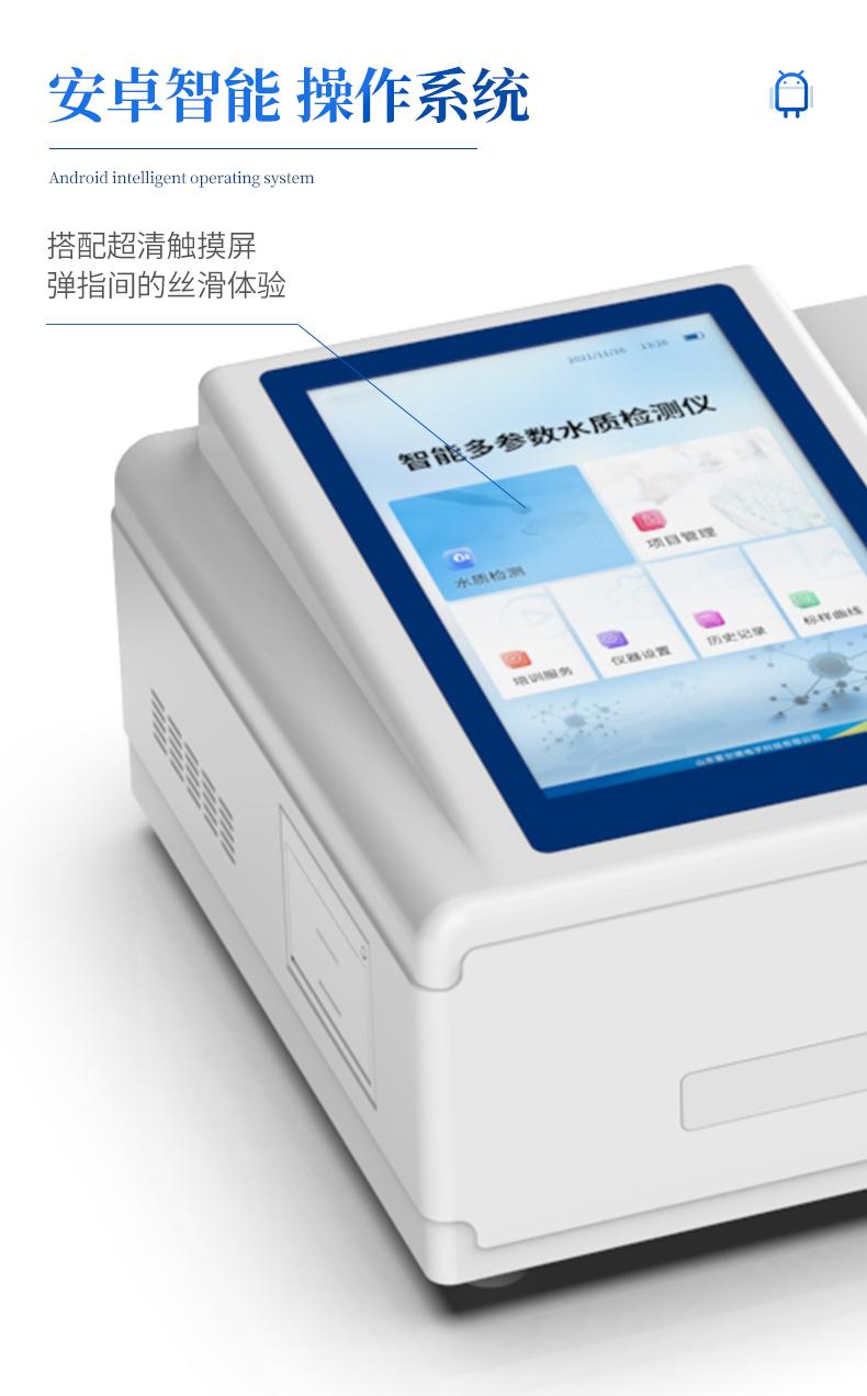 | 采用全新安卓7.1.1智能系統,人性化中文操作界面,運轉速度更快速,穩定性更強。 | 8英寸液晶觸摸屏顯示,人性化中文操作界面,讀數直觀、簡單。 | 采用精密比色池設計,使用光源一致,可以解決由于光源誤差帶來的檢測結果誤差問題,檢測結果更加精準。 | 光源采用進口超高亮發光二極管,光源亮度可以自動調節與校準。 | 支持10mm、30mm、50mm皿比色和φ16mm管比色等比色方式,多元選擇,確保測量的準確性; | 具有無線通訊功能,支持WIFI、RJ45、手機熱點聯網傳輸,檢測數據亦可通過U盤導出; | 多功能樣品管理,可對樣品進行中英文命名,方便樣品記錄和數據存儲; | 儀器可永久存儲800萬組數據,為方便大量數據查找,可通過時間檢索,并隨意選擇分析; | 支持HDMI輸出,方便用戶培訓、講解、及大屏展示。 | 儀器帶有監管云平臺,數據可通過局域網和互聯網上傳,亦可對接上傳至環境監管部門平臺。 | 內置熱敏行式打印機,打印紙上的內容可自由選擇(包括二維碼打?。?/td> | 交流220V,可選配6ah大容量充電鋰電池,方便戶外流動測試; | 內置教學演示視頻,用戶可一邊看儀器內操作視頻,一邊進行實驗操作,更易上手; | 后期產品固件可升級。 |