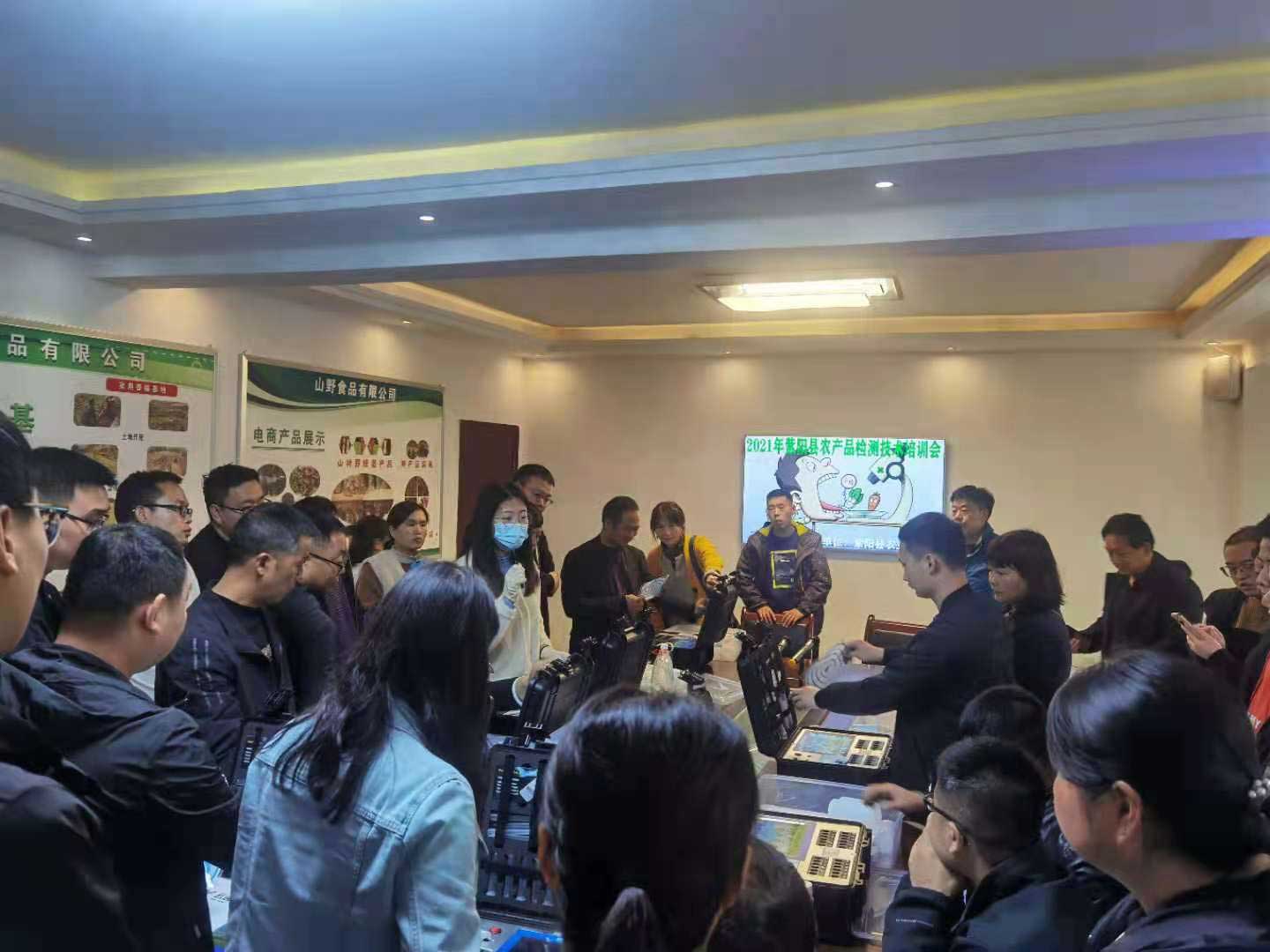 為了能夠更加準確的檢測食品當中農殘及獸殘,提高農業綜合執法能力,陜西省安康市紫陽縣農業農村局與我司達成合作,引進我司獸藥殘留檢測儀與農藥殘留檢測儀,以下是我司儀器培訓人員現場教學圖。