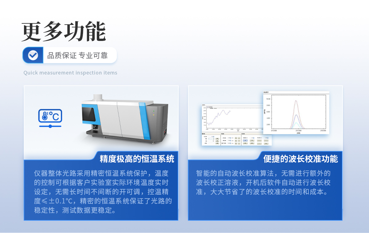 智能的自動波長校準算法,開機后軟件自動進行波長校準,大大節省了的波長校準的時間和成本。 12、精密的分光系統