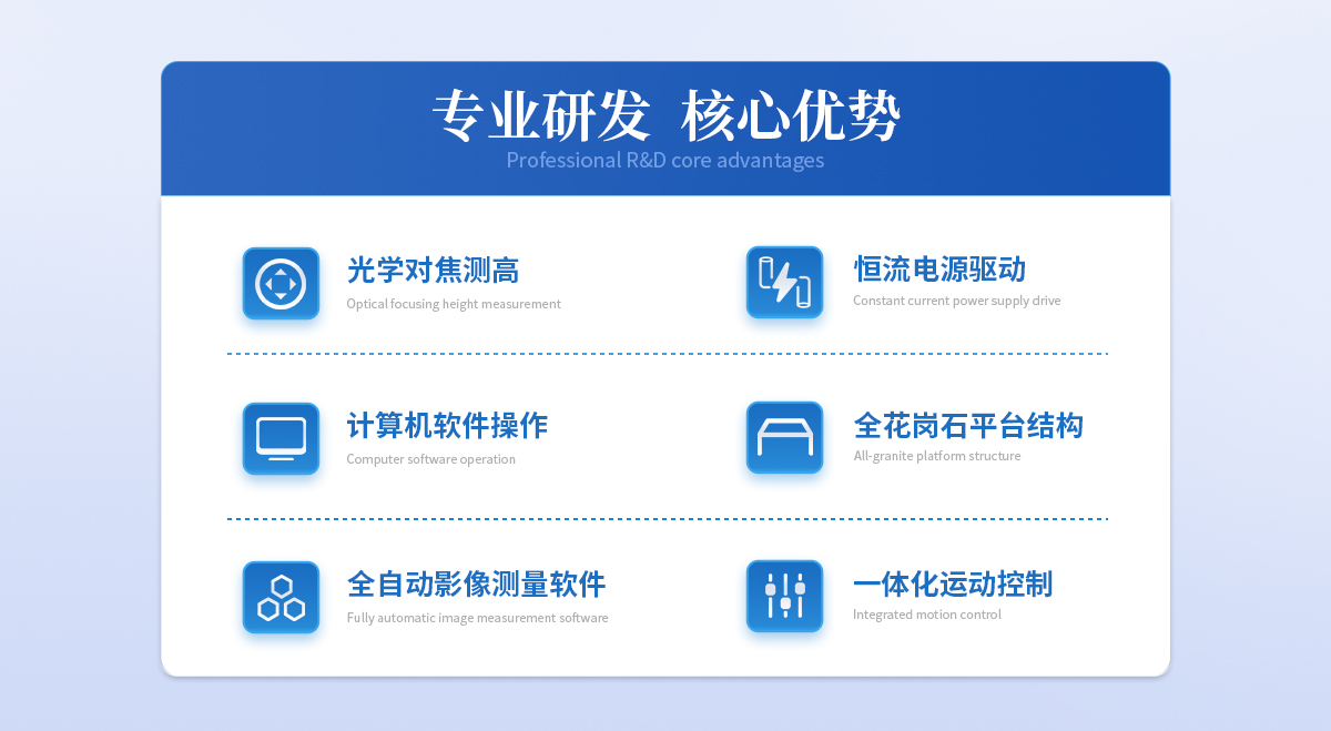 | 1.本機(jī)專(zhuān)為**全自動(dòng)量測(cè)市場(chǎng)量身定制,其具有的CNC編程、精準(zhǔn)定位、重復(fù)測(cè)量、SPC報(bào)表統(tǒng)計(jì)、自動(dòng)測(cè)量結(jié)果輸出等功能,能快速**地解決不同產(chǎn)品的批量測(cè)量需要,適用于以二維及簡(jiǎn)易三維測(cè)量為目的的一切應(yīng)用領(lǐng)域, 廣泛應(yīng)用在鍋爐、壓力容器、航天、航空、電力、石油、化工、海洋石油、管道、軍工、船舶制造、汽車(chē)、機(jī)械制造、冶金、金屬加工業(yè)、 鋼結(jié)構(gòu)、鐵路交通、核能電力、高校等行業(yè); | 2.本機(jī)X、Y、Z三軸均為伺服驅(qū)動(dòng),由鼠標(biāo)、鍵盤(pán)或選配搖桿縱,通過(guò)本司專(zhuān)用的全自動(dòng)影像測(cè)量軟件,具有自動(dòng)邊緣提取、自動(dòng)理匹、自動(dòng)對(duì)焦、測(cè)量合成、影像合成等人工智能技術(shù),同時(shí),基于機(jī)器視覺(jué)與微米**控制下的自動(dòng)對(duì)焦功能,可以滿足清晰攝影下輔助測(cè)高需要(亦可加入精密測(cè)頭完成接觸式坐標(biāo)測(cè)高)。 可在使用夾具或工件隨意放置的情況下,進(jìn)行批量測(cè)量、SPC結(jié)果分類(lèi)、自動(dòng)輸出測(cè)量結(jié)果等作。 |