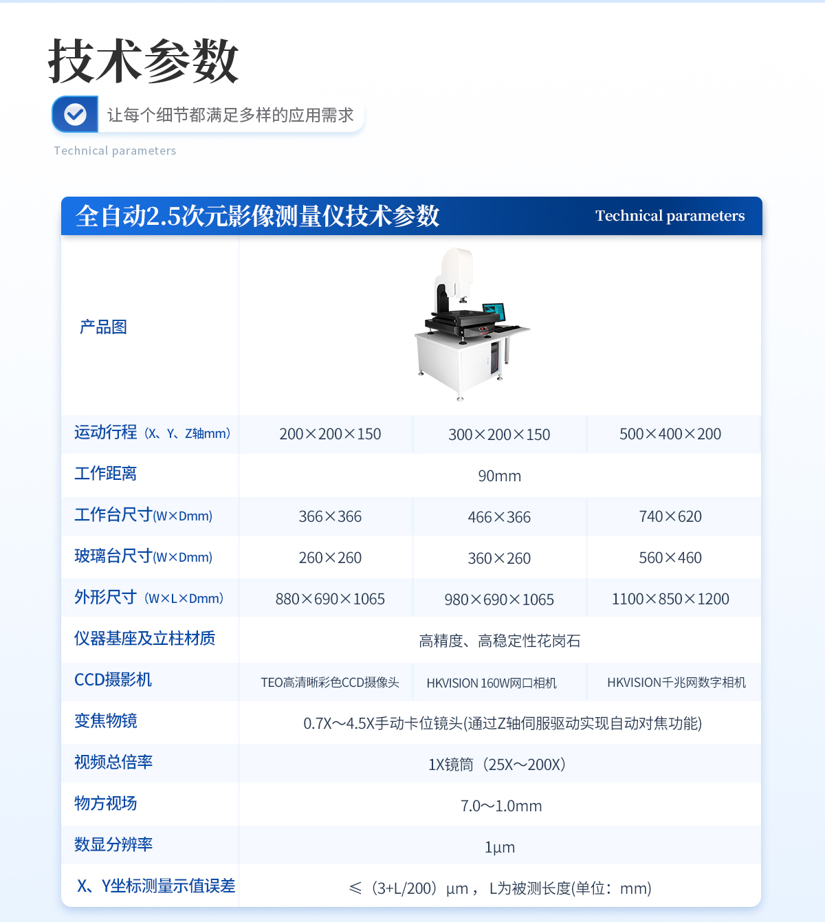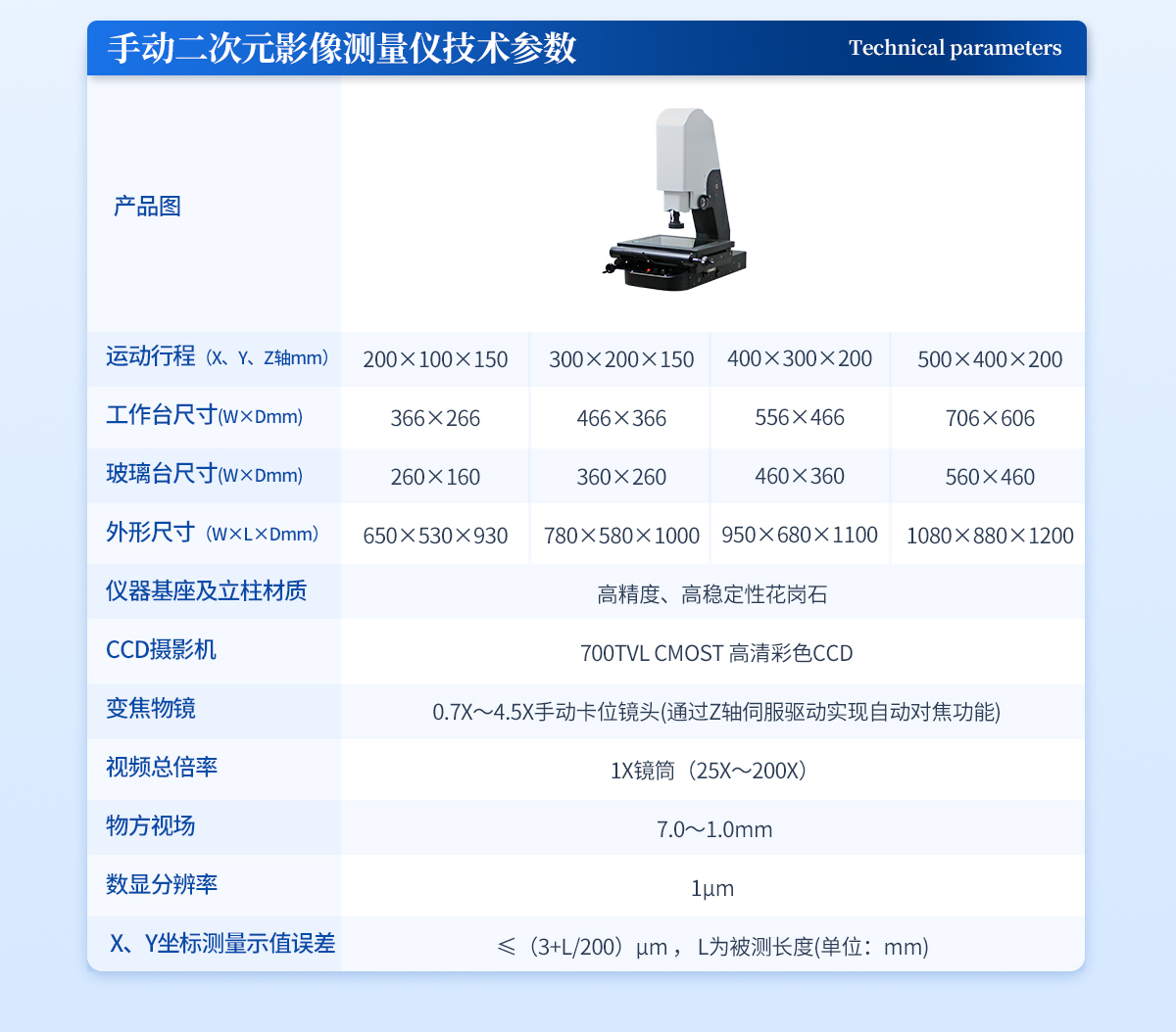 | 1.運(yùn)動(dòng)行程(X、Y、Z軸mm):200×200×150 | 2.工作距離:90mm | 3.工作臺(tái)呎寸(W×Dmm):366×366 | 4.玻璃臺(tái)呎寸(W×Dmm):260×260 | 5.外形尺寸(W×L×Dmm):880×690×1065 | 6.儀器基座及立柱材質(zhì):高精度、高穩(wěn)定性花崗石 | 7.CCD攝影機(jī):美國(guó)TEO高清晰彩色CCD攝像頭(或HKVISION網(wǎng)口相機(jī)) | 8.變焦物鏡: 0.7X~4.5X手動(dòng)卡位鏡頭(通過(guò)Z軸伺服驅(qū)動(dòng)實(shí)現(xiàn)自動(dòng)對(duì)焦功能) | 9.視頻總倍率: 1X鏡筒(25X~200X) | 10.物方視場(chǎng): 7.0~1.0mm | 11.數(shù)顯分辨率:1μm | 12.X、Y坐標(biāo)測(cè)量示值誤差≤(3+L/200)μm , L為被測(cè)長(zhǎng)度(單位:mm) | 13.作方式:XYZ三軸全自動(dòng)伺服電機(jī)控制 +集成一體化運(yùn)動(dòng)控制設(shè)計(jì) (只需對(duì)接220V電源接口、USB接口、AV視頻接口即可使用) | 14.測(cè)量軟件:INS全自動(dòng)影像儀專(zhuān)用測(cè)量軟件 | 15.工作環(huán)境:溫度20±5 °C,濕度35%-75%(盡量滿足環(huán)境條件),如果溫濕度條件不能達(dá)到以上標(biāo)準(zhǔn),至少要將儀器放置在少灰塵,少油氣,遠(yuǎn)離振動(dòng)源的室內(nèi)。 |