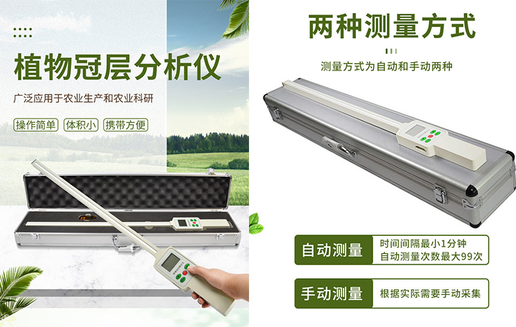 整套是由數據采集器和探桿兩部分組成。探桿上包括18個獨立的傳感器,可同時測量上、下冠層的PAR值。探桿長度:50 cm